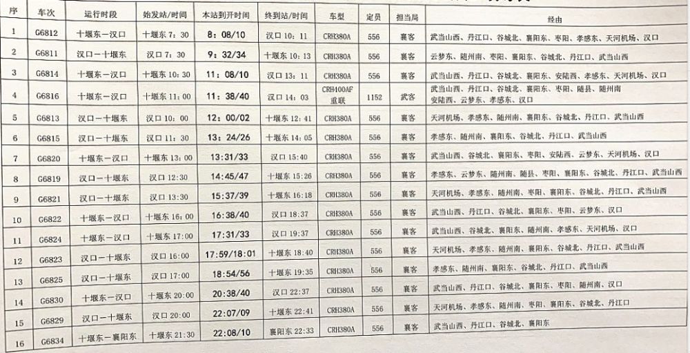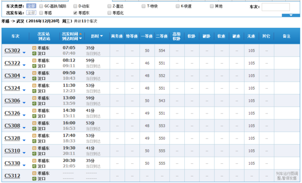 以下是孝感东站最新时刻表的预览(部分):